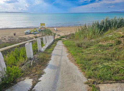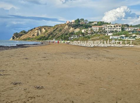 By the time I arrived back at the hotel, the incoming weather front seemed to have moved across the sea and not inland – at least for now. I took the path from the studios down onto the beach and walked its length and back. Agios Stefanos is a sand beach set in a shallow bay. It offers just the right amount of organised facilities – enough sunbeds and watersport options but still leaving plenty of natural beach left to appreciate.