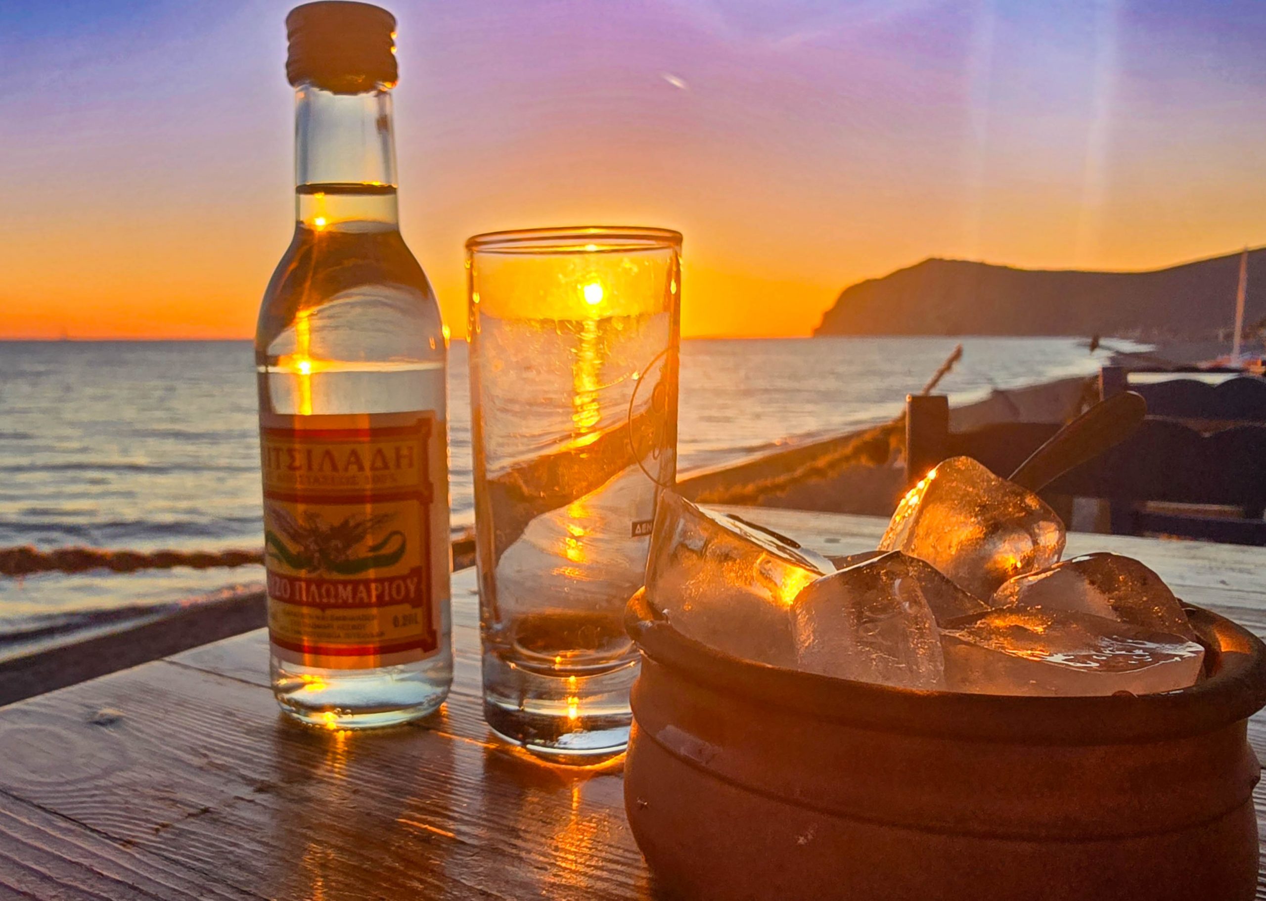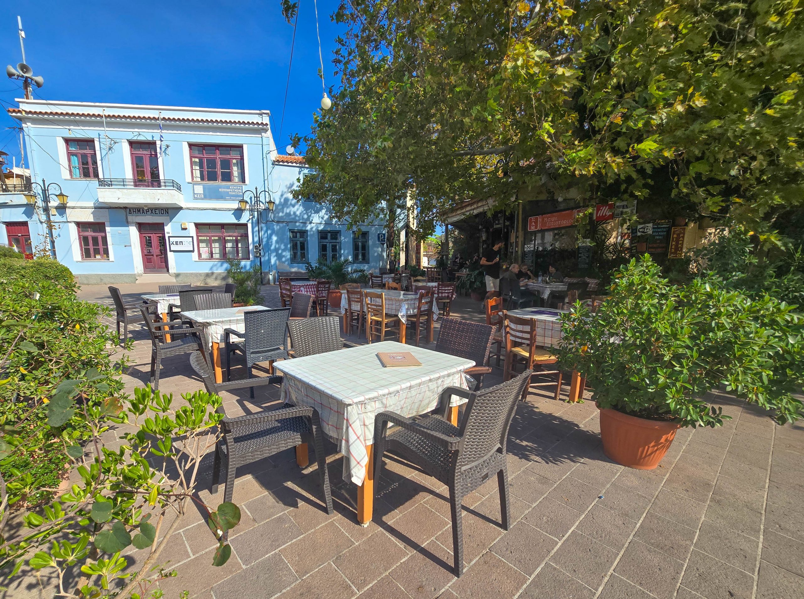 Dining in Skala Eresou was easy. With so many tavernas to choose from, the hardest decision was where to eat. I mostly gravitated towards the beachside places, perfectly positioned for sunsets that never failed to impress. A couple of favourites quickly emerged. Blue Sardine stood out from the rest — a little different in feel, with a genuinely warm welcome from Kosta and his mama, an impressive selection of ouzo, and uninterrupted views across the beach as the sun slipped into the sea. It was the perfect place to spend my birthday. Just a few doors down, Adonis was another dependable favourite, alongside Karavogiannos.