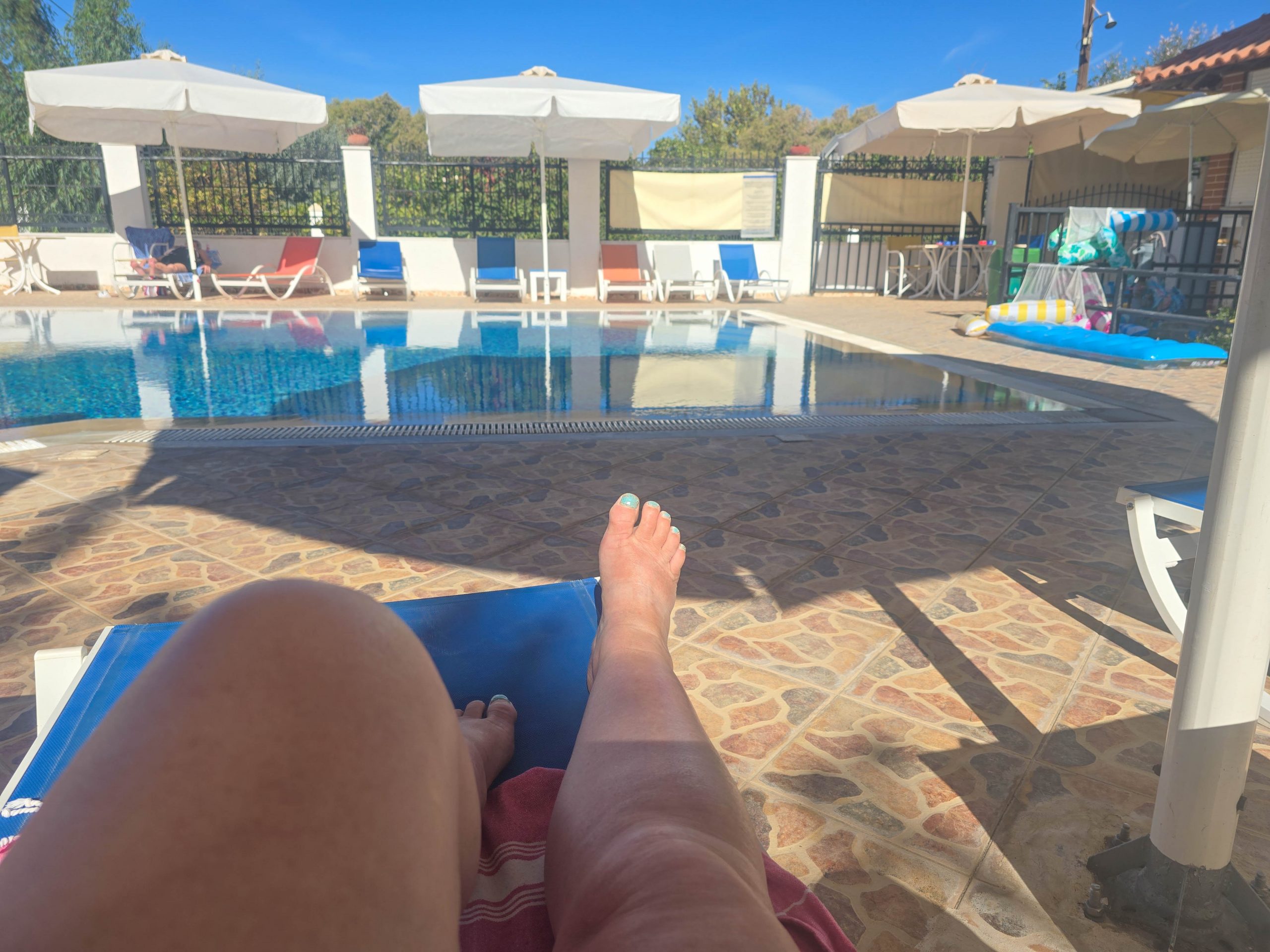 And so, over the remaining days, my rituals continued. A walk to the bridge to say good morning to the turtles, breakfast at Yalos, another walk to the marina and then beyond, into the surrounding landscape. I made use of Elefteria’s lovely little pool, its small snack bar run by her son (sometimes I didn’t need to move all day!). I walked the same streets at different times of day. I watched arrivals and departures. I let the place settle around me. Because sometimes, when a place offers both ease and depth, the most meaningful thing you can do is stay still long enough to notice.