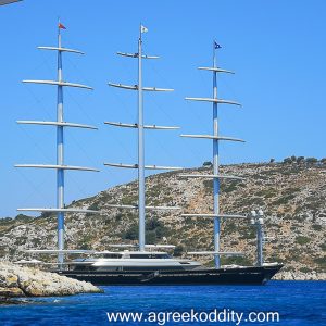 Along the way, we pass a huge super yacht moored up in another bay. Now I may be a bit of a ferry nerd but I’ve never really paid much attention to yachts. However, I think I’ve seen this one before – can’t remember where but I’ve definitely seen her in and around the islands previously. It really is such a magnificent vessel that you can’t help but give her a second look. The flags on top of the masts confirm that this is the Maltese Falcon. If you’d like to charter her, the cost will be 490k-580k€ per week. I’ve never had a hankering to travel the islands by yacht but I would give anything to see this beauty with her sails unfurled! Check out the link below to see more: