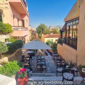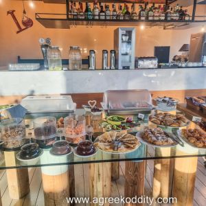 Breakfast at the Lotus is a sight to behold. Not only does their breakfast room on the top floor have fantastic views of the Acropolis, the breakfast offering doesn’t disappoint either! Prior to Covid this did open as a bar in the evening too but at this point has not yet re-opened in that capacity.