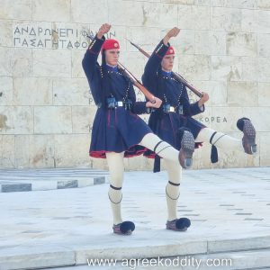 The Evzones changing of the guard ceremony is a very unique spectacle that takes places on the hour and every hour in front of the Tomb of the Unknown Soldier. If you happen to be in Athens on a Sunday at 11.00 make sure you catch the Grand Change. Here the Evzones wear their most elaborate of ceremonial uniforms that includes the white kilt called the Foustonella which has 400 (Yes 400!) pleats. Each pleat represents every year that Greece was under Ottoman occupation. This ceremony is quite spectacular as the whole regiment is accompanied to Syntagma Square by the marching band.