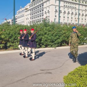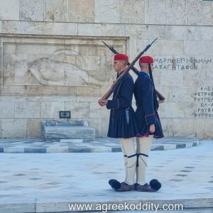 I find myself almost on autopilot and heading down Ermou Street. It is still early and the street is still waking with street cleaners busy at work and delivery vans dropping off goods. I keep walking until I reach Syntagma Square. Although I’ve seen the Evzones many times it’s almost as though a trip to Athens isn’t complete without seeing them. When I saw them last it was just over a year ago and they were in their khaki summer uniform. This time they are in their dark blue winter uniform – another reminder that autumn is most definitely upon us despite how warm it feels to us visitors.