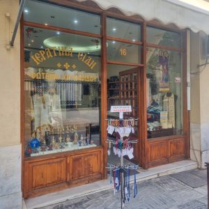 I veer off Ermou and find myself by the Metropolitan Cathedral. On the other side of the cathedral is a street called Agias Filotheis street where I find a shop selling liturgical vestments, incense and all things ‘churchy’. It’s the small bowl of burning incense outside the shop that draws me in. Mr Chrysafidou is a charming man and talks me through the various incense fragrances. I buy two bags of these aromatic little pebbles along with some charcoal tablets. My Egyptian husband loves burning incense resin as it reminds him of the church back home. Before I leave, Mr Chrysafidou sprays my arm with a heady perfume which will definitely invoke memories of the church for my husband so I buy some of this too. To hell (or heaven) with the packing logistics – I’ll make it work some how.