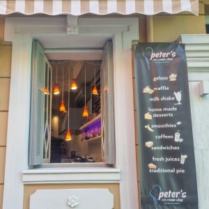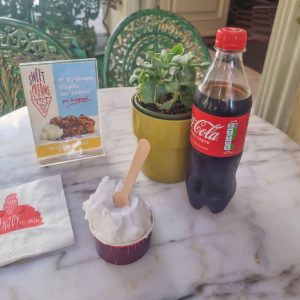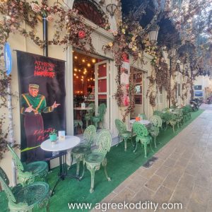 Just time for some refreshments before I catch the metro at Monastiraki. Across the road from the Lotus Inn is the Athens Hall of Horrors. Next to this is a little cafe adorned in faux vines and roses called Sweet Screams. I call in for a coke and an I Scream – I mean Ice cream.
