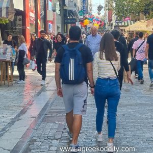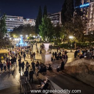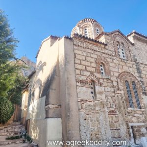 As I finish my meal I can hear music. I can hear a drum and trombones and I know exactly where they are. On Ermou, the space next to the church of Kapnikarea is the place that at times transforms into a public performance space. The entertainment is usually of a good quality but what’s even better is the opportunities to people watch!