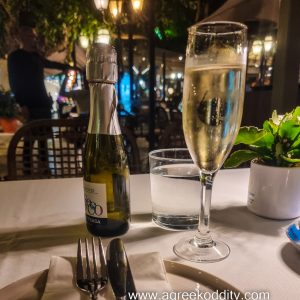 The journey back through the rush hour traffic is pretty horrendous and seems to take an eternity. The travel time is longer than the visit time at the site. However, this has been a nice way to spend half a day. The bus drops us in Syntagma which is heaving with people. I make my way directly to Plaka to eat and tonight I choose Kitro – and I’m on the Prosecco again!