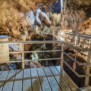 About twenty minutes later we arrive at the car park to the Cave of Lakes in Kastria – the distance is about 17 kilometres from Kalavryta. Alex tells me that if there is a tour about to start he will wait for me. If I have to wait for a tour, he will go and come back for me. He walks with me to the ticket office and as luck would have it a tour is about to start. I’m directed down a path to the entrance of the cave. There are two Greek couples waiting so the tour will commence with just five of us. Whilst we wait for the guide I fall into conversation with one lady who tells me that she is an English teacher in Athens. She has come away for a weekend break only to discover that some of her students are staying in the hotel room next to hers. There is no escaping them she tells me