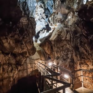 About halfway through we come to a very unique formation of basins known as ‘gours’. Imagine a miniature version of Pamukkale – though set in a cave. That’s the closest thing that comes to mind. There are some magnificent stalactites and stalagmites. At the end of the route there is even one of each that has joined together – a kind of conjoined stalactite/stalagmite. The guide tells us that what we see is only a tiny fraction of the whole cave. The part beyond the end of the route is several times larger than what visitors can see. There are large colonies of bats that live in the cave which come out on mass at night to feed and return early in the morning to rest.