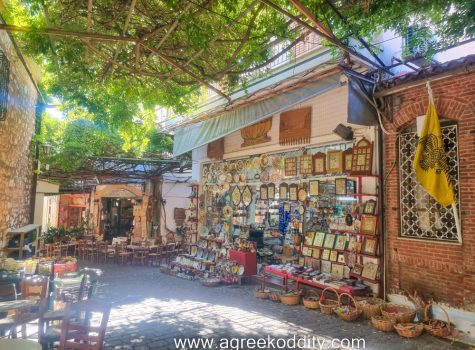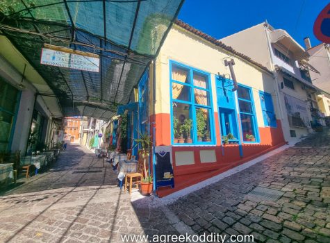 Eventually, I decided it was time to eat. I had in mind a taverna where I could sit down with a proper traditional Greek meal. Not many places were open, and the ones that were – like an interesting-looking kafenion – were full of men. As good as the food looked, I couldn’t quite muster the courage to go in. As I hovered by the doorway, heads turned one by one to look at me, as if to ask what I wanted. Sometimes this happens. Sometimes I’m just not prepared to brave it out. Sometimes it doesn’t feel right; I just don’t feel as though I fit. And that’s fine. It’s not them – it’s me.