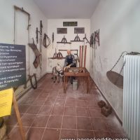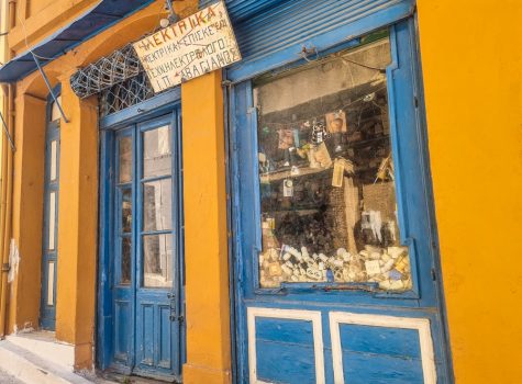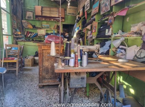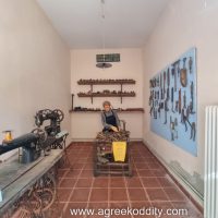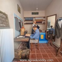 Sure enough, there it was – a place I’d already walked past several times without registering it. A set of large metal gate led me into a courtyard with the back of the church of Panagia Agiasos on one side. The Museum of Traditional Professions was housed in what used to be the church guesthouse. Each small cell was arranged as a display representing a traditional village craft, viewable through the windows at any time of day or night. I loved it. It was wonderfully quirky.