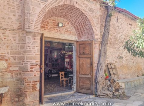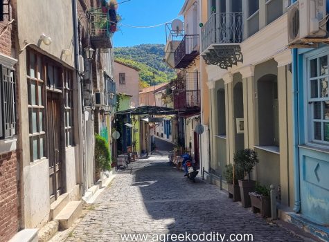 During breakfast, Chara came back to chat, asking how long I’d be staying and what plans I had. I told her I’d be in Mytilene for four days to begin with, but hadn’t yet decided where to go next. I also said that I’d be travelling everywhere by bus and had already picked up a timetable. Chara had a list of suggestions but said I absolutely must visit the village of Agiasos. It was, she said, a really pretty village, and if I went I had to visit the bakery and ask for the traditional cake of Lesvos called Vasilopita. It’s only made in Agiasos and traditionally baked at Christmas. I’d find the bakery just beyond the church in the centre of the village. That was it – decision made. That was where I’d go today.