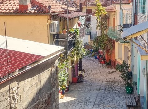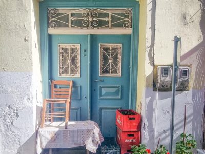 I needed to warm my hands around a hot cup of tea, so headed back towards the vine-covered alleyway where I’d spotted a café called Theophilos. After a little refreshment, I did my favourite thing: wandering the side streets with no particular plan. Some streets took me up, others took me down, and around almost every corner there was something to catch the eye – old doors, elaborate door knockers, tiny details that give a place its character. The door knockers alone deserved their own photo gallery.