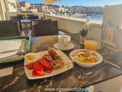 Despite the exhaustion from the early morning start the previous day, I was up with the larks. I was really looking forward to the inclusive breakfast that Hotel Lesvion offered – the first of the trip.