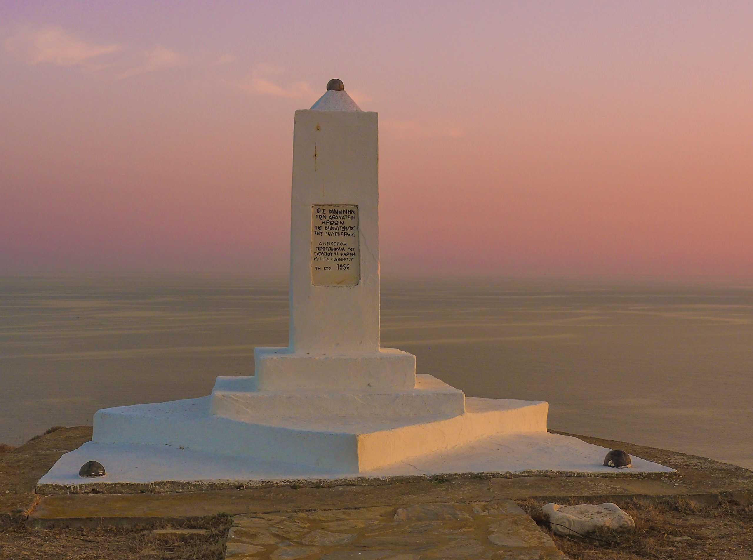 My eyes were drawn first to the monument perched on the cliff edge, stark against the fading light. Erected in 1956, it honours the Psara holocaust of 1824, yet standing there, the event felt far less like history and far more like something still pulsing beneath the rock. To think of the men, women and children who chose this precipice over surrender is deeply moving. The silence of the place seemed to hold their final breath. I stood there for a while, letting the weight of it settle, trying to absorb what happened on this very spot.