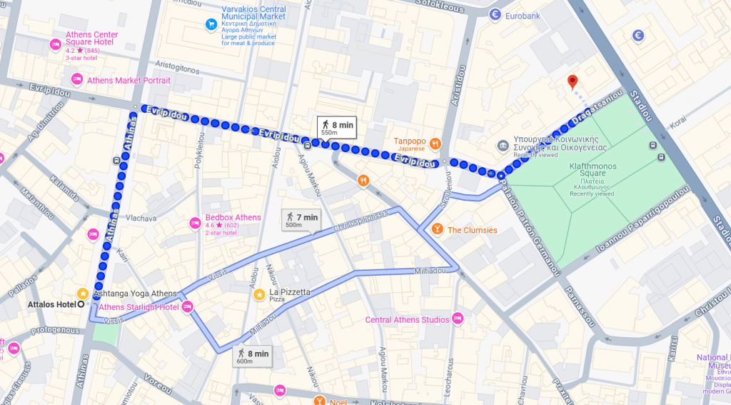 Still in a state of shock, I’d already forgotten the address of the police station. Thankfully, the staff at the reception desk gave me detailed directions written down on a map. It was less than a ten-minute walk away at 4 Dragatsanious Street adjacent to Klaftimonas Square. An entrance led me through a door and into the office where 3 staff were working at their desks.