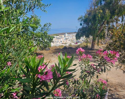Although I’m itching to get out and explore I remind myself that I’m here to rest. I take my beverages onto the cliff edge terrace and sit and take in the views. Occasionally a tour boat will come into the port of Korfos accompanied by the obligatory disco beats. The only other sounds are the chatter of children in the village school. Occasionally the high-speed boats will sail along the straight between the two islands with their engines reverberating up the cliff face. These views can rival those of Santorini any day!