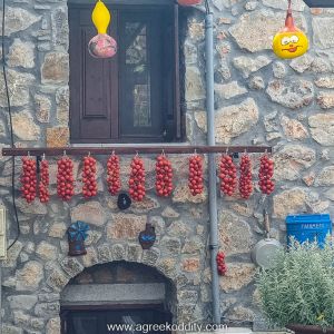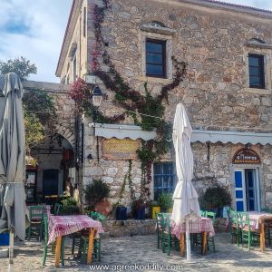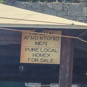 Now for a wander around this pretty village. One thing that I wanted to do is say hello to a guy called George who owns Spitaki, one of the hotels in Avgonema. In my day job working for Hidden Greece we do whenever possible, try to visit the hotels that we have in our portfolio. Our founders, now both elderly gentlemen have worked with these local businesses for many years but it is always good to have a refresh of information and to introduce ourselves. I head to the square where I’d seen a sign for honey for sale. I’m always a sucker for a jar of Greek honey, especially the old Meli Pinus! (You had to be there!). The square is quiet and nobody seems to be in at the taverna until I walk in and see the owners are having their lunch. I apologise for disturbing them and say I’ll come back later. The lady won’t hear of it. I buy a jar of honey and ask her if she knows if George is around. She points me in the direction of his reception. I thank her and make my way there. It’s that time of day when everything and everyone goes to sleep (in spirit at least) and there is no sign of Mr George. Not to worry – another time.