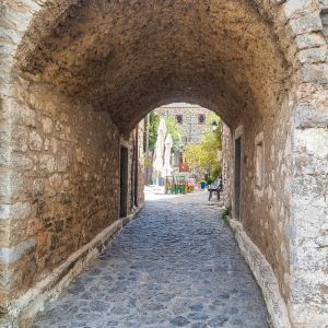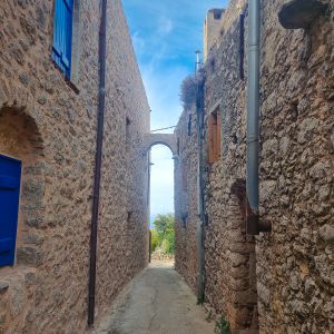 Avgonima is another of Chios’s medieval fortified villages that has undergone some restoration since it was almost abandoned in the 1960’s. There is a good choice of accommodation here and several taverna’s to choose from. The focal point on the main square is the church and from here the alleyways will take you in all directions, past beautiful stone houses covered in bougainvillea and potted plants on doorsteps.