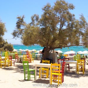 We walked almost (but not quite) to the end of Plaka Beach. Exhausted we fall into a beach bar for refreshments.