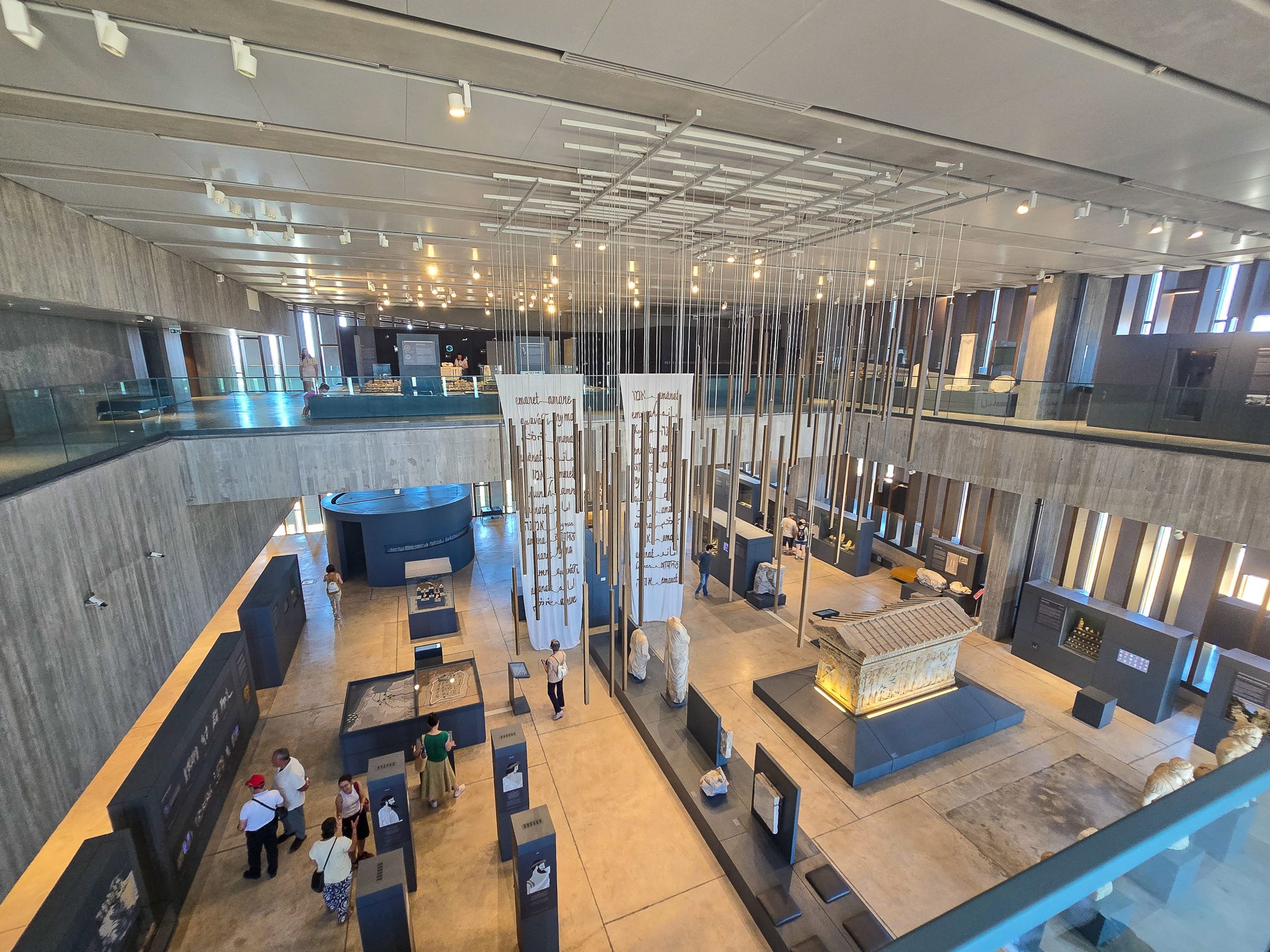 What I particularly loved was how the museum didn’t just present objects as isolated artefacts. Multimedia displays, scaled reconstructions, and 3D models allowed visitors to imagine entire houses, palaces, and city walls. For instance, a digital reconstruction of the Megaron brought the burnt ruins we had walked past into reality, showing how it would have looked with its plastered walls, whitewashed floors, and a hearth.