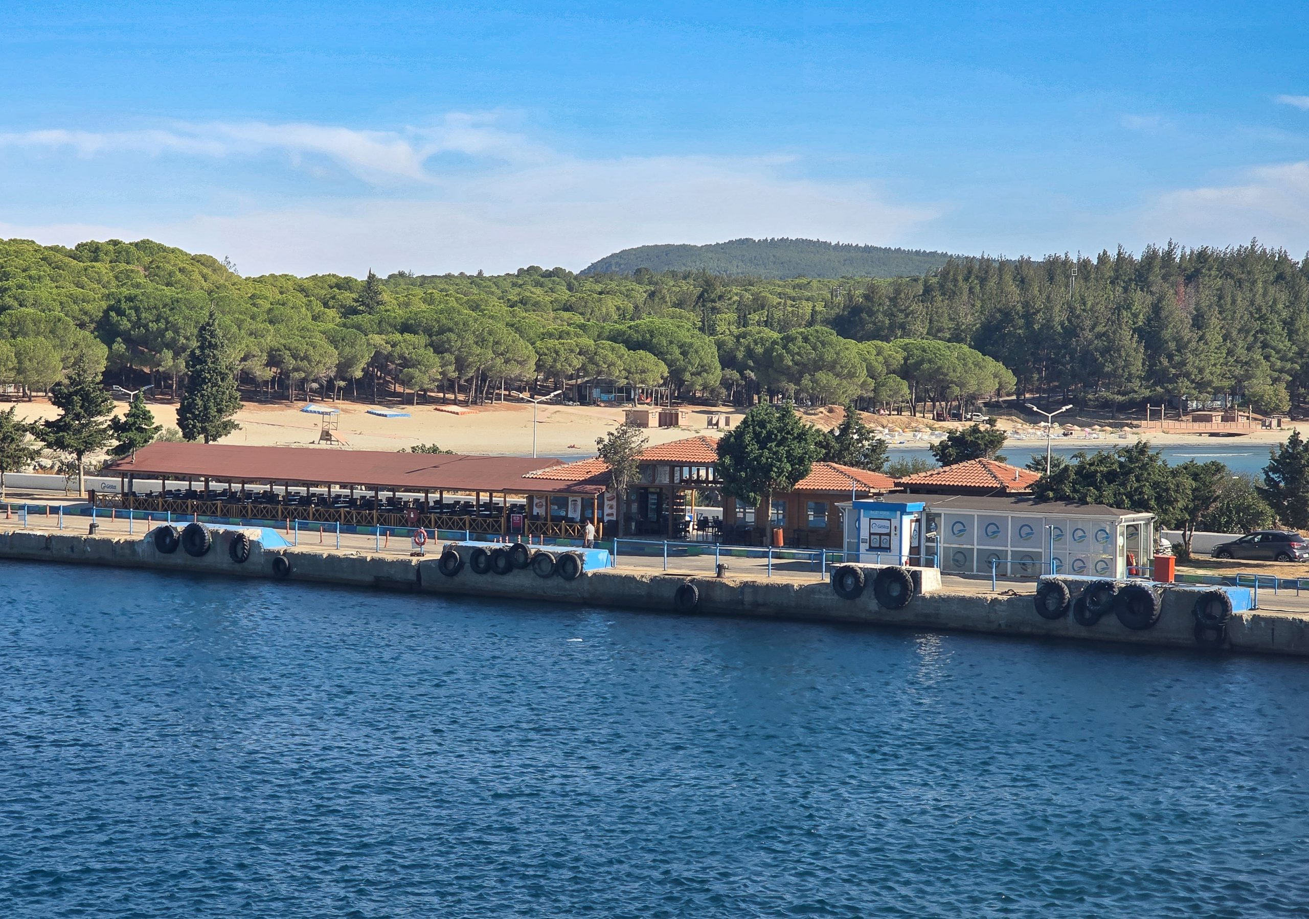 At Kabatepe, the Gökçeada ferry was waiting — though rather than with open arms, it felt more like an open mouth about to swallow us whole. Once on board the Gokceada 1, we stowed our luggage and climbed up onto the deck. We finally had a moment to take in the view: sandy beaches stretching out on either side, acres of pine and fir forest gathering behind them. If we hadn’t been on a mission to get to Gokceada, we might have stayed longer, but hey ho.