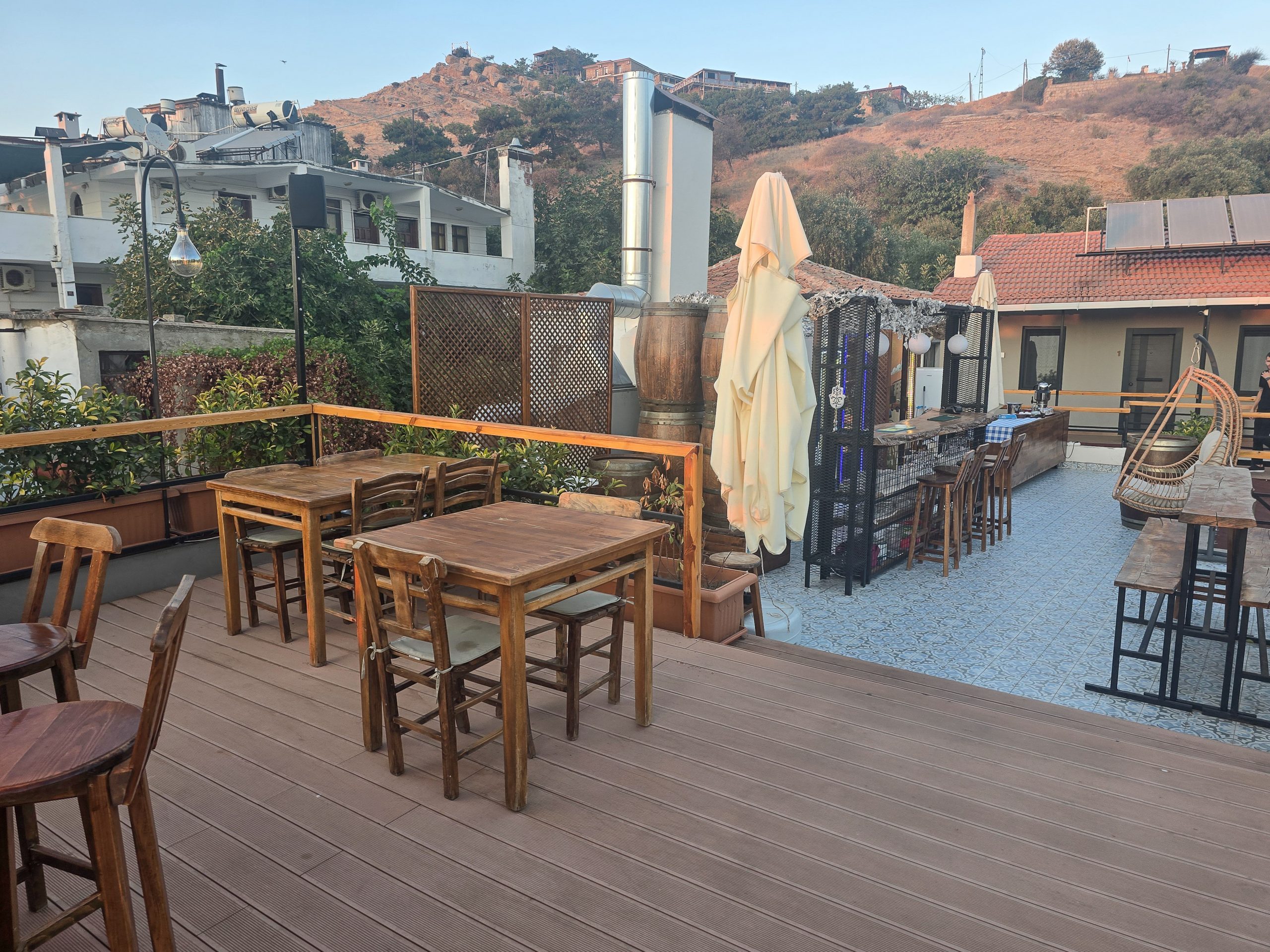 Here we joined an enormous queue for the connecting bus, bags at our feet, hoping. When the bus arrived, there was nothing short of a stampede for a place on the bus. Somehow, we managed to squeeze on with standing room only. The bus was packed with young people, and soon enough we realised why — they were all headed to the university perched above the island. As soon as we reached it, the bus emptied dramatically, leaving us space to breathe. This now left just the two of us and a local to make the now short distance to Kalekoy. Just to double check, Peter asked him, ‘Kalekoy?’. He confirmed with a nod. At the next bus stop, the man got up to leave, and again Peter pointed out of the window and asked the man ‘Kalekoy?’ Again, another nod. We followed him off the bus, unsure whether something had been lost in translation. It had. Once I checked Google Maps again, I could see that we hadn’t reached Kalekoy at all. We were in the village of Yenibademli. Thankfully, it was just a twenty-minute walk to our destination.