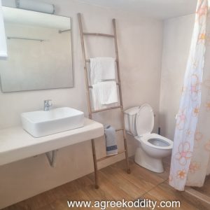 We receive a lovely welcome from Konstantinos. The GA’s have their own room on the ground floor and we have ours on the next floor up. The room and bathroom are spacious and clean and have views over the pool and surrounding cave houses. I don’t ask for anything else.