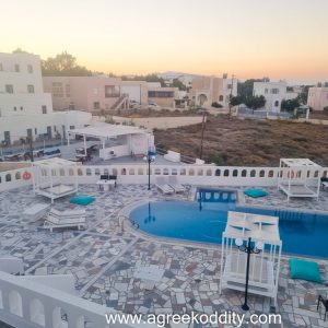 This hotel was a last minute booking. I’d needed to make some changes to our itinerary and had left this until the end. There wasn’t a lot of choice left but Villa Kavallaris seemed really well located for both the port and the airport. We are here for 2 nights before flying home. The only thing that we have planned is a Volcano and Sunset boat trip on the Aphrodite the following day so access to the port is important. We also have a pool here which is just perfect!