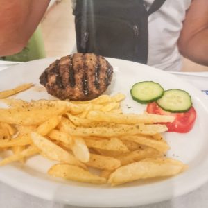 There is a sense of quiet and tranquillity in and around Villa Kavallaris. We can see how close the airport is as planes take off and land yet we can’t hear them. We head out for something to eat. The main road is busy. However, we find a taverna a short walk away that gets very good reviews online. It is also quite empty which is quite a relief after our experience in Fira almost two weeks ago. Taverna Paradosiako doesn’t disappoint. The food is absolutely top notch!