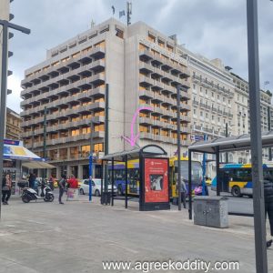 I will be visiting the the SNFCC via the free shuttle bus that departs from Syntagma Square. The website tells you that the bus stop for the shuttle is located near the junction of Syntagma Square with Ermou. Now there is more than one bus stop here which is confusing. I spot a ticket seller for the Hop On Hop Off buses who tells me which one it is. As you look at the parliament building with your back to Mcdonald’s it is the one on the far left next to the kiosk.