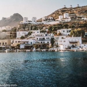 We found a place selling chicken giros for 400 dracmas. After the beach we showered and Steph went to sleep. I couldn’t sleep due to the excessive moped noise from the road outside so I read for an hour. After this I walk up the hill to Chora where old men sat outside café’s chatting to the priest. I then went down the other side ending up at Agia Marina. I eventually found a travel agent who was able to tell me about the ferry schedules for the next leg of our journey. The only one to Nisyros apparently was on Saturday morning – a day earlier than we wanted to go.