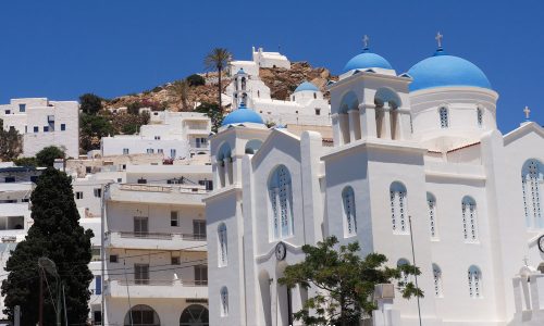 Back at the port we have another boost of energy and decide to walk to the Church of Agia Irini. This is the church that you will immediately see as you approach the port by ferry. A short walk along the road around the back of the port in an anticlockwise direction brings you past a small marina on the right and an abandoned pool to the left. Just beyond this is the approach of the church. The cascade of churches above Chora are always in sight.