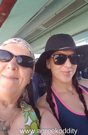 The bus took us through the suburbs of Athens and along the coastal road through Perama. Further along, I gave Sorrell a nudge to keep her eye out for the Corinth Canal. However, as we were on the express bus, that thing flew over the canal so quickly we barely saw it!