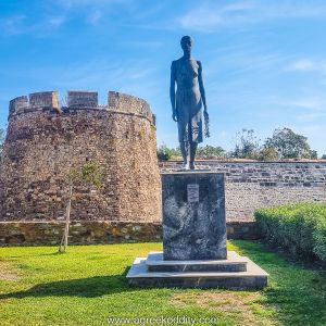 I’m itching to get out and see what this little fishing village has to offer. Just one minutes walk from the house and I’m at the marina. There is a couple of taverna’s and cafe’s along the back of the road but everywhere looks completely deserted. Close to the marina itself is a bust of a familiar looking man. Yes it’s the swashbuckling hero Constantinos Kanaris himself!