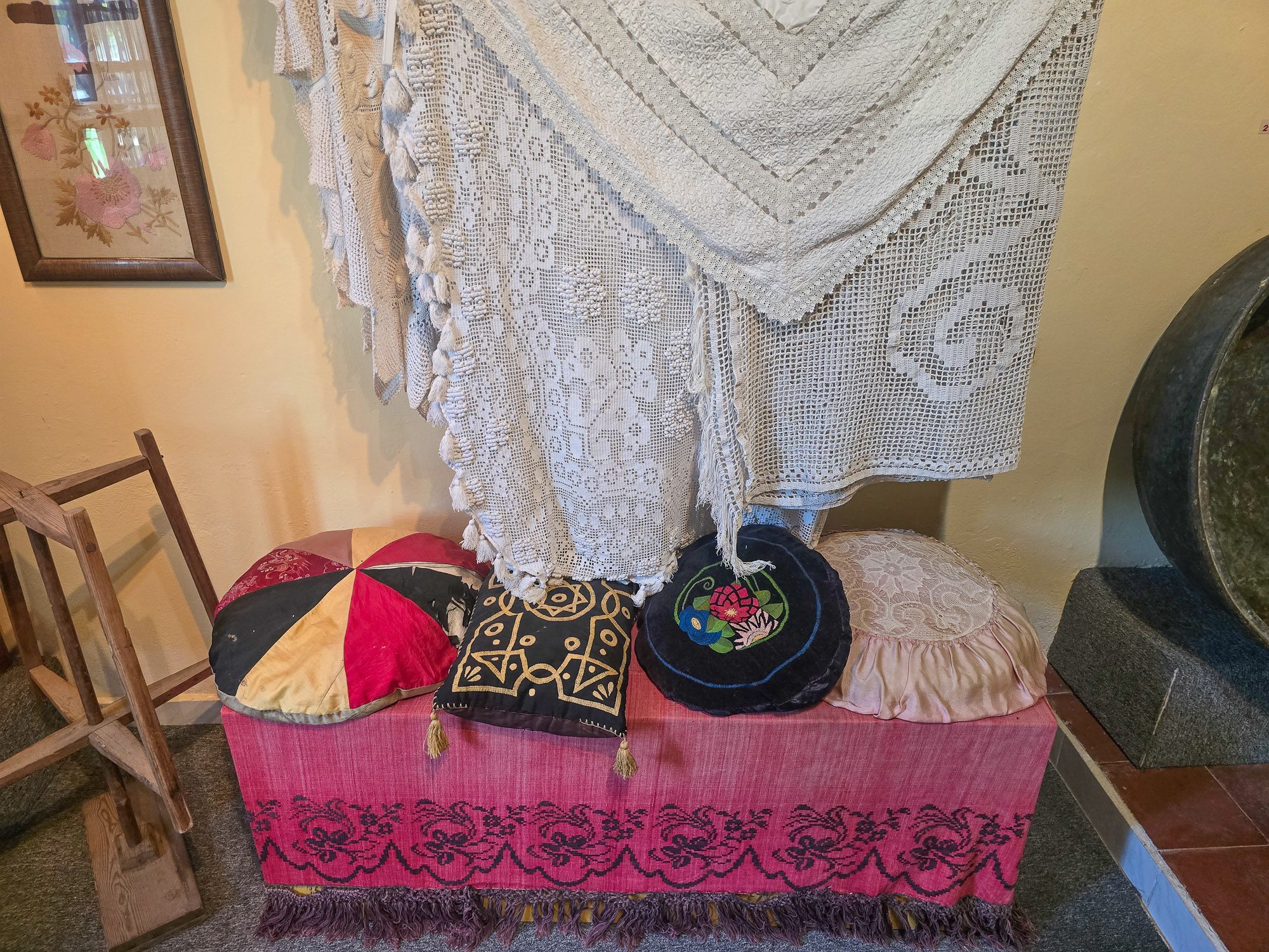 The museum has been in operation since 1982. It consists of four rooms with every surface packed with artefacts carried from another life. The first room was fascinating, stuffed full of clothing, sewing equipment and a revelation that Kios had been at the heart of a thriving silk industry. Located on the shores of the Marmara Sea, many of the homes were built with two or three storeys, often with a sachnisi and a space allocated especially to rear the silkworms. The houses were spacious and built using the Baghdadi method, which I’d never heard of until then. It is a method of building that originated in Iraq, using flexible materials for climate control, but more importantly, to lessen the impact of seismic activity.