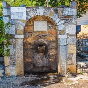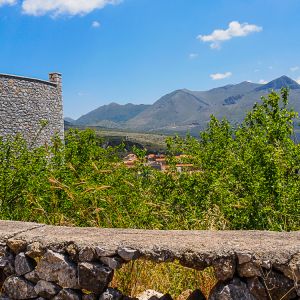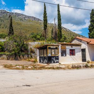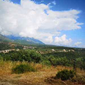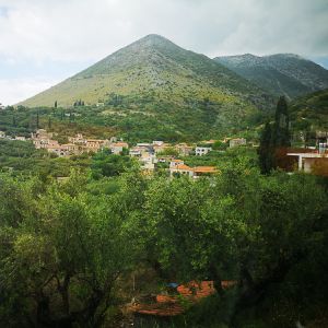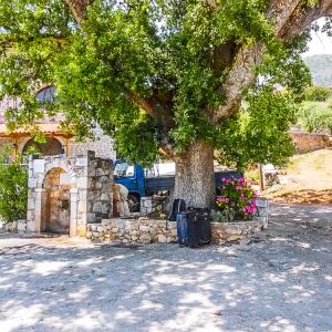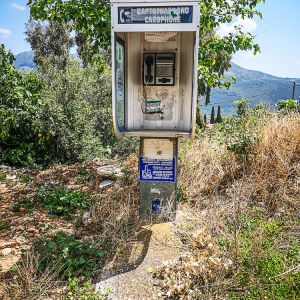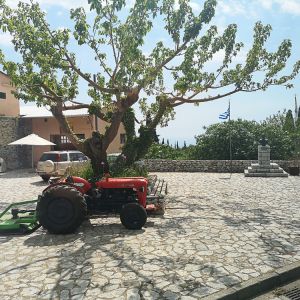 We were unceremoniously turfed out of the taxi in Itilo and told to wait under a sprawling oak tree on the main road above the village. We had one hour to wait. Close by was a broken public telephone, beehives that sounded very active and a view of the remains of a kastro.