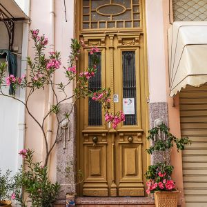 Kalamata like other ‘ordinary’ towns have their own unique features if you take the time to seek them out. We spend the evening walking around the town. At one point we do try to head up to the Kastro but it is closed. It is Saturday evening and there is a church service is in progress and we stop to listen to the singing. There are door knockers to be found and lots of charming streets to discover.