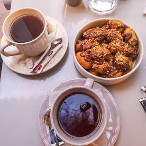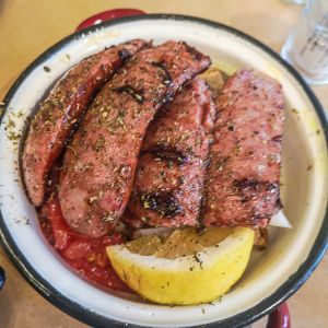 There are some very nice taverna’s and bars. We choose to eat at Kalamaki Meze where we sit and watch the priest greeting his flock at the church in the square. As a treat we then head to Mama’s Sweet House for some very indulgent loukoumades!