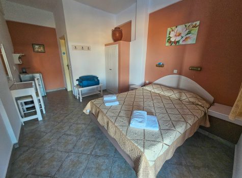 My host at Antonia Rooms has arranged for a taxi to pick me up from the port. It’s a little chaotic as we disembark with everyone scrabbling for the few available taxis. Thankfully I found my driver quite easily. It takes 10 minutes to drive up the snaking road to the car park and square on the edge of the village. The driver gives me directions to Antonia’s and I climb the street to find it. Within minutes I heard a lady calling my name. Antonia is running after me and immediately takes my case from my hand. Two minutes later we arrive on a charming little street and the entrance to the rooms. However, my built-in vertigo alarm bell begins ringing immediately! There are two sets of steps down to the rooms that are rather vertigo-inducing.