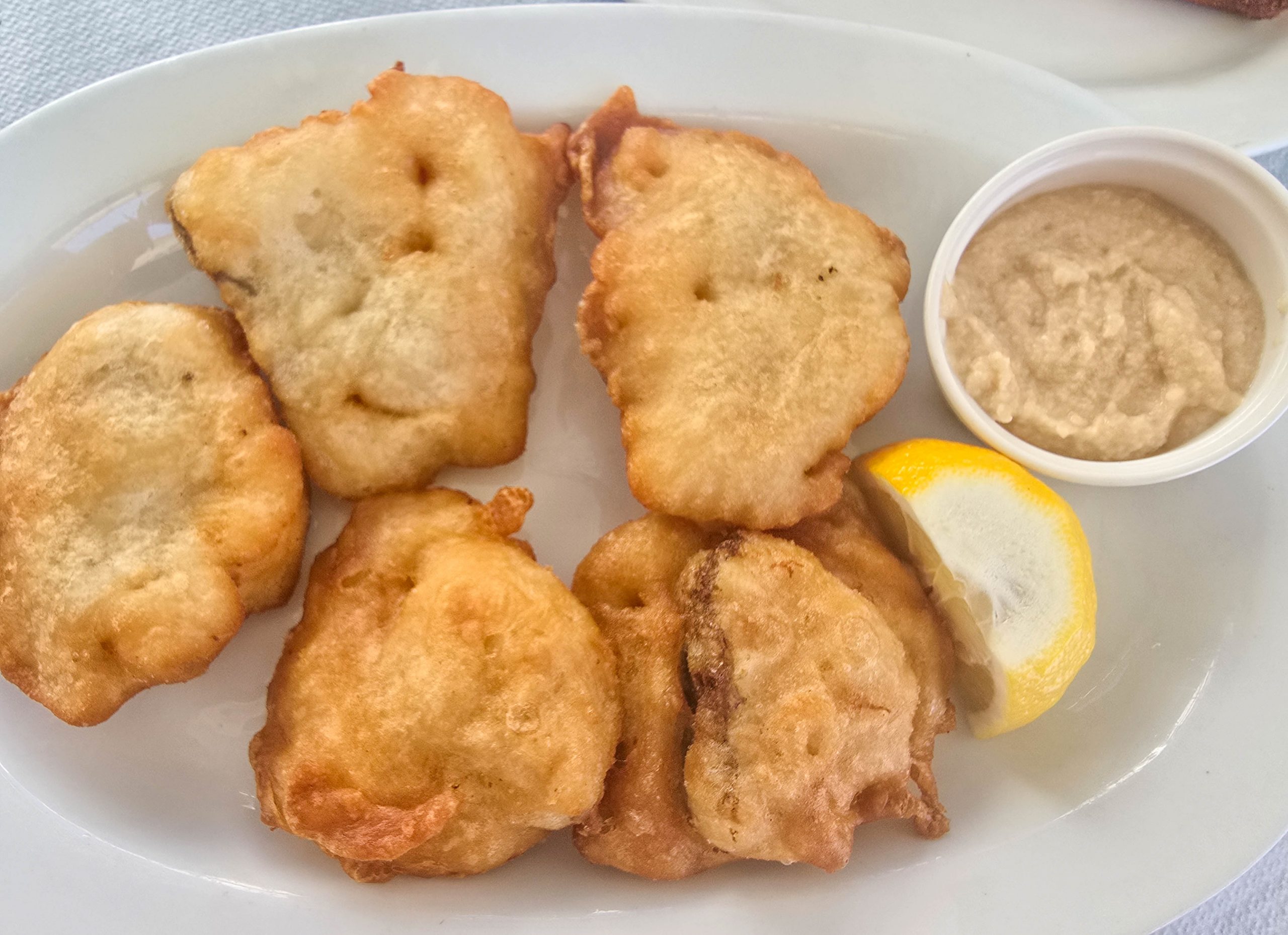 We arrived early enough to secure a table, though the taverna quickly filled, mostly with visitors from Turkey. The menu, helpfully, is written in both Greek and Turkish. We ordered generously — skordalia, grilled whitebait, sausages, porterhouse pork and kotopoulo schnitzel and of course ouzo. As we ate, the musicians arrived and began to set up. It didn’t take long before both traditional and Greek pop songs had everyone singing along, and soon the dancing started. What I love about Fat Jimmy’s is that it feels authentic. It’s a place where Greeks, Turks and the occasional tourist come together to enjoy good food, excellent music and the company of friends and family.