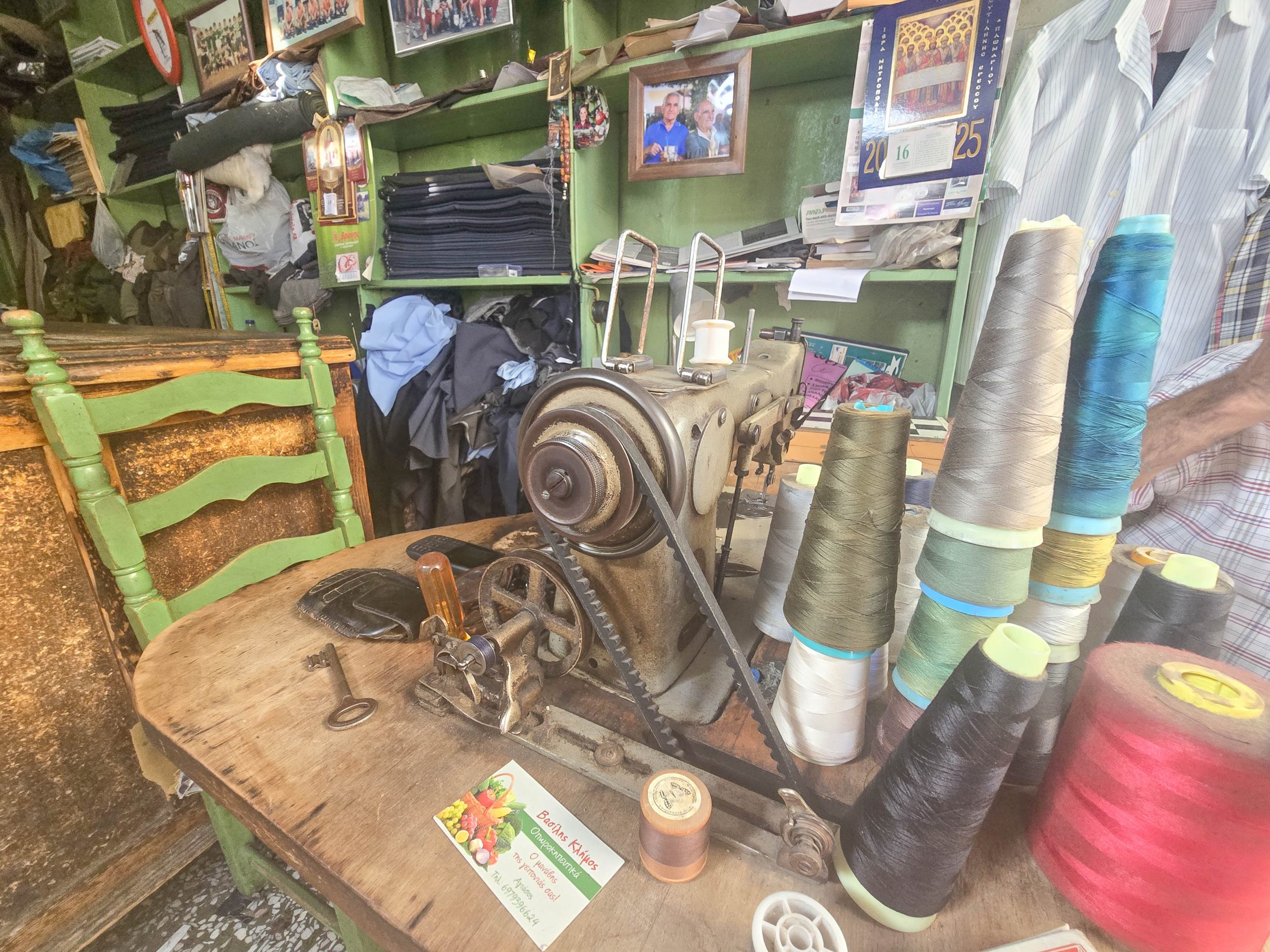 Climbing further, the village revealed itself in small, intimate scenes of daily life. A couple of traditional shops still function as living museums. In one tailor’s shop, the owner sat at his sewing machine and happily invited us in to take photographs. As someone who has sewn most of her life, this place really tapped into my own memories of working with fabric and pattern, and the quiet satisfaction of making something by hand.