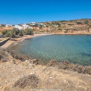 We return to the car and retrace our track back up onto the main road towards Panagia Charou. Between the houses, I get a glimpse of what I now know was Chochlakora Beach and it looks gorgeous. I ask Peter to wind down his window and take some snaps whilst I keep an eye out for any unsuspecting traffic. This beach has a long stretch of tamarisk trees and I read later that the beach is rocky but with very clear water. I make a note to come back later if we have time.
