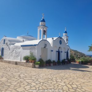 The outward-looking view from the church is rich and verdant and close by there is a field of grapevines so there is obviously a good level of fertility on the island. The Lipsi Winery grow several types of grape including Fokiano which is the oldest indigenous grape in the Aegean. The wine that is produced on the island is highly commended and since the Italian occupation of the islands, the wine has been sent to the Vatican.