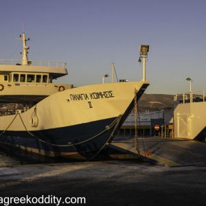 After 30 minutes, we arrive at Parikia which seems quieter at this time of day than it did in frenetic hours of the early morning. It is the case that within minutes of a large ferry coming into view, a port will suddenly burst into a hive of activity and then as quick as it came, the calm returns.