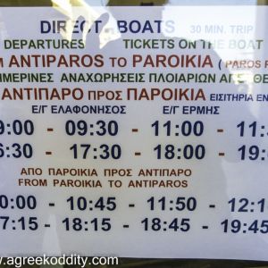 Parikia (the main port of Paros) – Antiparos. It takes about 30 minutes. The timetable may change throughout the season so this is only a guide.