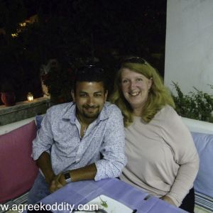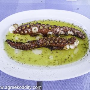 She tells us a lot about herself – through her fathers job she had travelled extensively around the world as a child. Her husband works for an airline and they had at one time lived in Nigeria. In between conversations about photography (at times it turns into a photography lesson) we order our meal. I don’t think Peter wants to spend so much time wrestling with his food tonight and also we are spoilt for choice on the menu. We decide to order a mixture of things including octopus, zucchini fritters, aubergine salad, local cheese and a Greek salad.