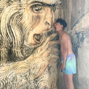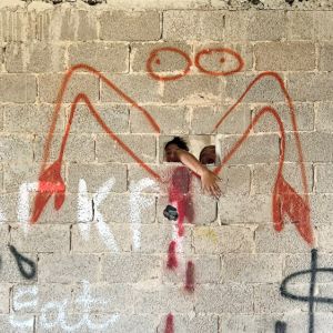 Everyone is back at the bus and we prepare to make our way back. As we set off Stelios asks us if we have enjoyed the tour of which there is a resounding ‘Yes!’. He then tells us that he has another little stopping off point for us. I immediately know what it is and I turn to Peter and grab his hand. ‘I know where we’re going’ I tell him. I was absolutely right. Stelios is taking us to the abandoned hotel to have a quick look at the graffiti art installation. I’m thrilled!