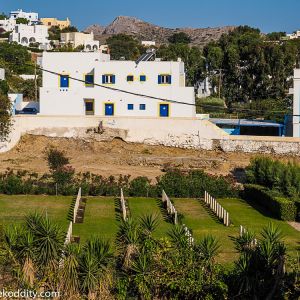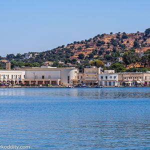 The first thing I notice about Lakki is the wide tree lined streets and green squares – very different to the narrow roads of Agia Marina where cars have to take turns to pass each other. This continues onto the harbour front and this is where you can begin to see the Italianesque architecture. Lakki was built as a Utopian town by Mussolini’s architects and includes the art deco style cinema that conjures up images from the film Cinema Paradiso.