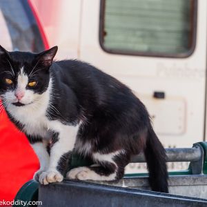 Soon after, I hear the chugging of an old motorbike which comes to a stop shortly ahead of me. I can see an old man struggling with something on the back of his bike. As I get closer, a polystyrene box and a pair of old metal weighing scales slip from the back of his bike, spilling fishy contents all over the road. I help him retrieve his slimy and sometimes spiny catch and place them back in the box. Some are pink others are silver and black. He’s still straddling his bike and trying to keep it upright whilst wrestling with the heavy scales that are caught up in some string. I go and fetch the polystyrene lid that flew off some 20 yards back and bring it back to him. Once all secured, he gives me a wide grin and a zealous “Efaristo poli!”